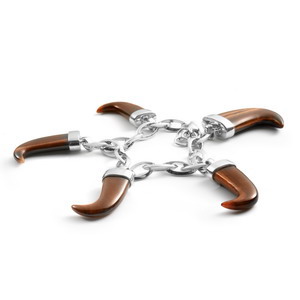 | Pulsera simba de plata de ley 925 y ojo de tigre con acabado en baño de rodio |