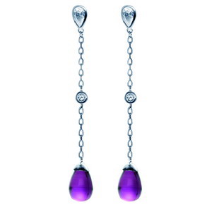 Pendientes mulema de plata de ley 925 y cristal de roca amatista con acabado en baño de rodio. El nombre de la línea lo avala: ATELIER Color. Joyas que se rinden a un diseño atípico que han colocado estos diseños sensuales en una posición privilegiada: formando parte del fondo de armario de la mujer actual. Diseños constituidos por circonitas de colores cuidadosamente terminados a mano sobre una base de Plata de Ley 925.