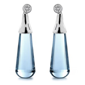 Pendientes muyuyu de plata de ley 925 y circonita aguamarina con acabado en baño de rodio. El nombre de la línea lo avala: ATELIER Color. Joyas que se rinden a un diseño atípico que han colocado estos diseños sensuales en una posición privilegiada: formando parte del fondo de armario de la mujer actual. Diseños constituidos por circonitas de colores cuidadosamente terminados a mano sobre una base de Plata de Ley 925.